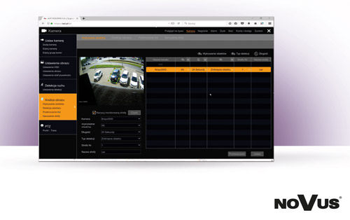 Rejestratory IP NOVUS z serii 6000 we współpracy z kamerami IP z serii 3000 z funkcjami inteligentnymi umożliwiają skorzystanie z funkcji analizy obrazu, takich jak wykrywanie obiektów, detekcja sabotażu, przekroczenie linii oraz naruszenie strefy. Wszystkie wymienione funkcje, dostępne do tej pory wyłącznie jako autonomiczne funkcje kamer, są teraz w pełni konfigurowalne poprzez menu ustawień rejestratora. Ich konfiguracja jest przesyłana automatycznie do kamer, więc nie jest wymagany komputer do konfigurowania kamer za pomocą przeglądarki internetowej.